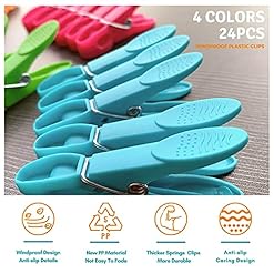 Clothes Pins Heavy Duty Outdoor, Plastic Clothespins Laundry Clips 24 Pack Colorful Windproof Small Clothing Close Pin for Hangers Hanging Clothes Drying Cloths Beach Towel Clothesline Pegs, 4 Colors