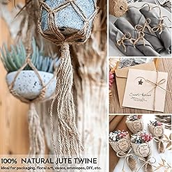 BEST TWINE ROPE FOR CRAFTS – Perfect thickness jute rope for a craft project. Best use in Arts and Crafts, wrapping gifts, and gardening yard.