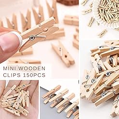 🌲【Natural Wooden Mini Clothespins】- Package includes 150 PCS clothes pin for pictures and 32 Feet jute twine (10 meters). Our small clothes pins for photos are natural mini wooden clothespins for photos. Photo clips size: (L) 25mm x (W) 3mm x (D) 8mm.